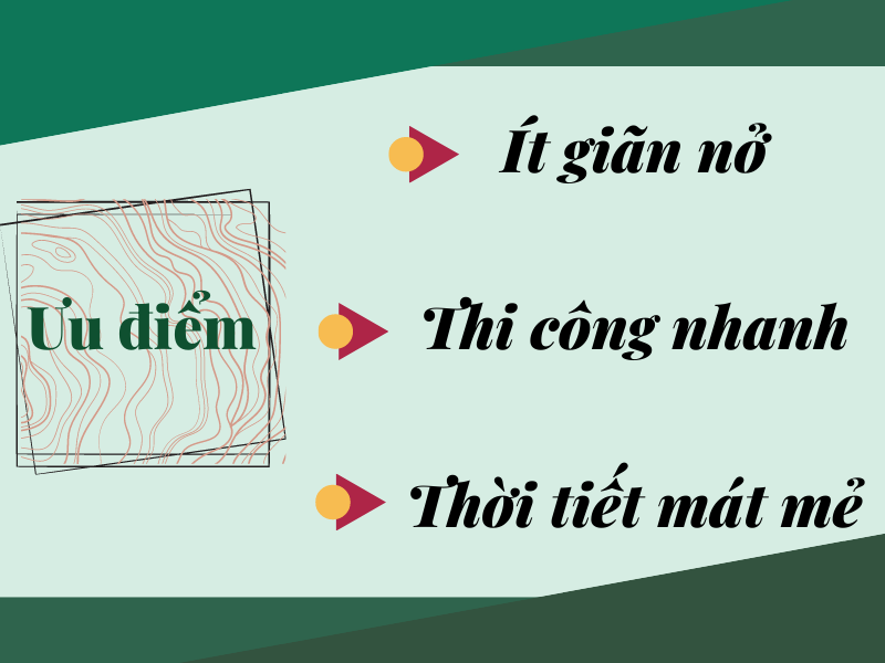 - Ngoài ra, việc đổ bê tông vào mùa khô cũng sẽ nhanh hơn vì mùa khô đẩy nhanh được tiến độ thi công trong khi đó mùa mưa sẽ cần nhiều thời gian hơn.