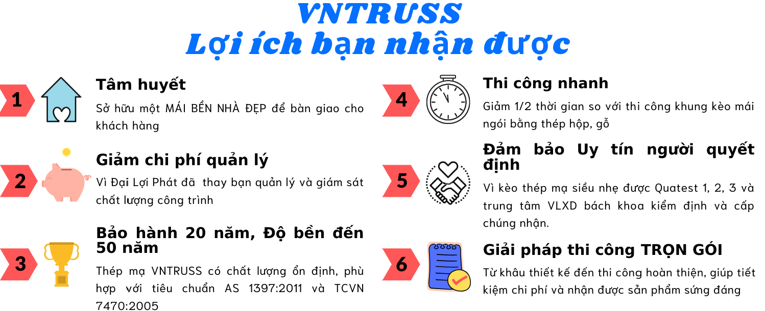Hệ giàn kèo mái ngói thép mạ VNTRUSS có ưu điểm gì nổi bật: